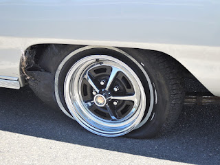 Pneu arrière explosé, pneu usé et réchappé façon US mais il y a un rapport avec le disfonctionnement du cylindre de roue, c'était le pneu monté sur la jante qui chauffait. Pas de casse , la jante est intacte, un gars de la patrouille d'autoroute est passé, a sécurisé l'endroit et est reparti en nous filant une bouteille d'eau , sympa.